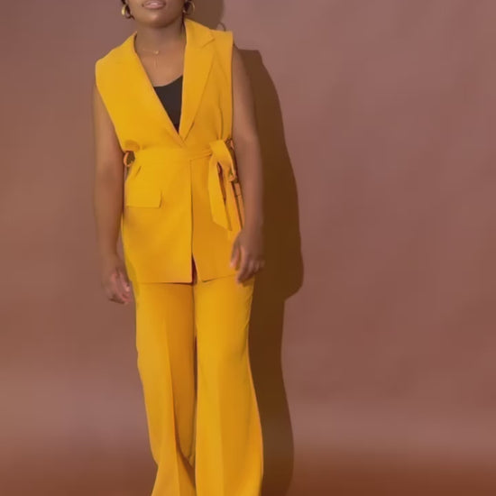 Belted Palazzo Pant Set (Mustard)