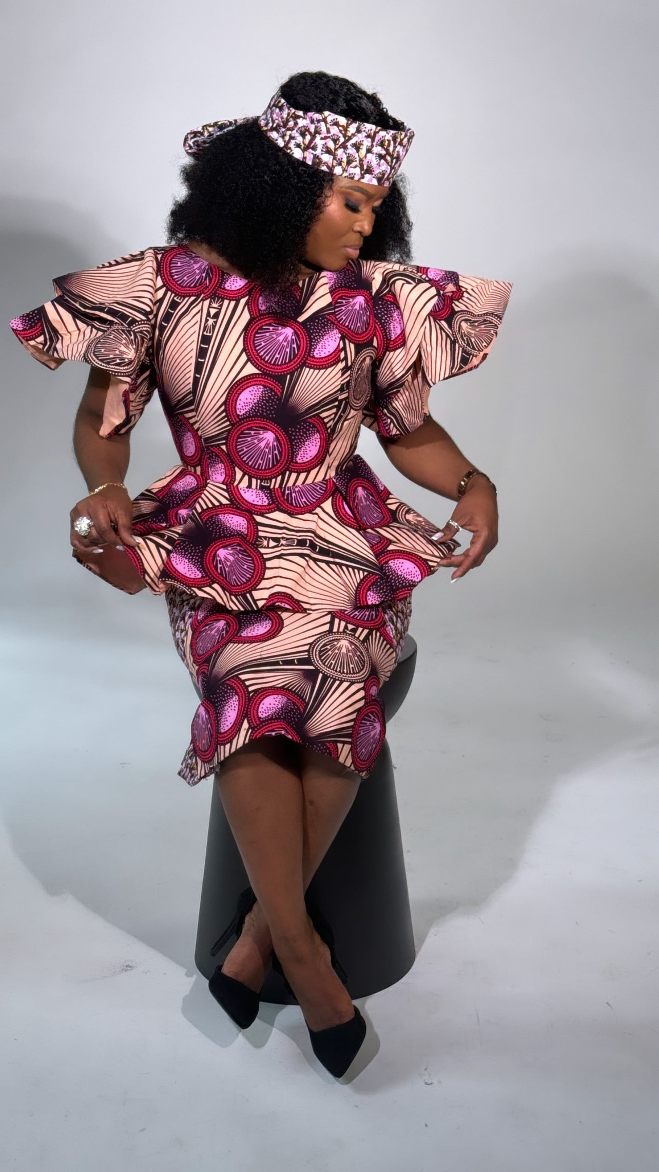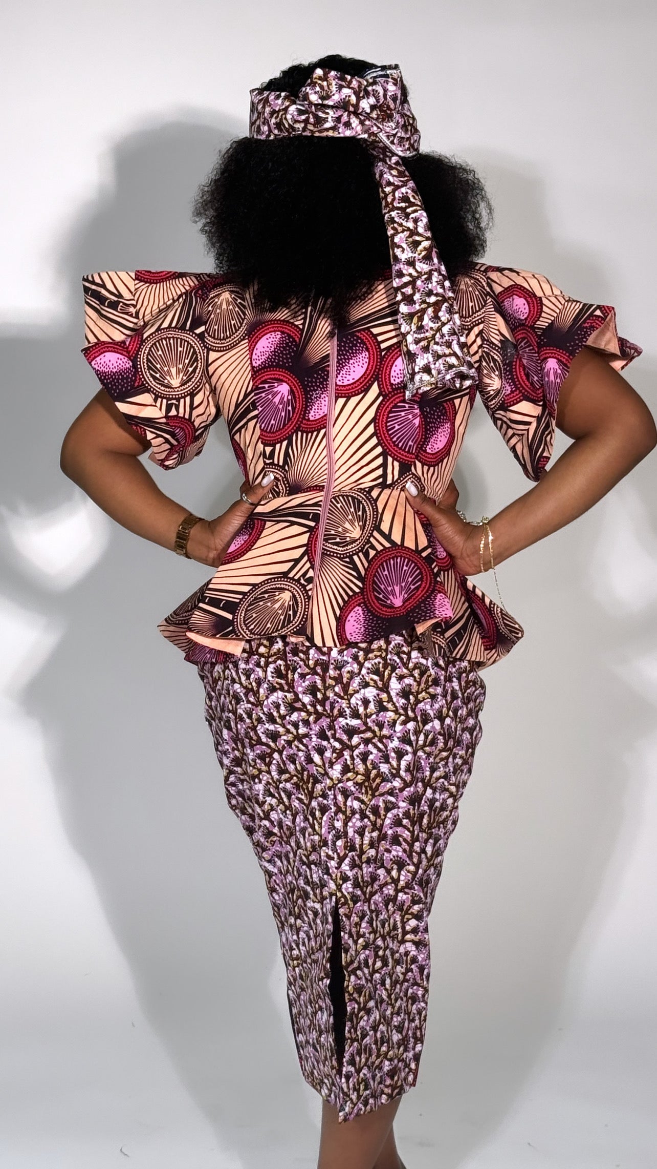 Women’s super wax Mixed match 2pc skirt & blouse with headpiece.